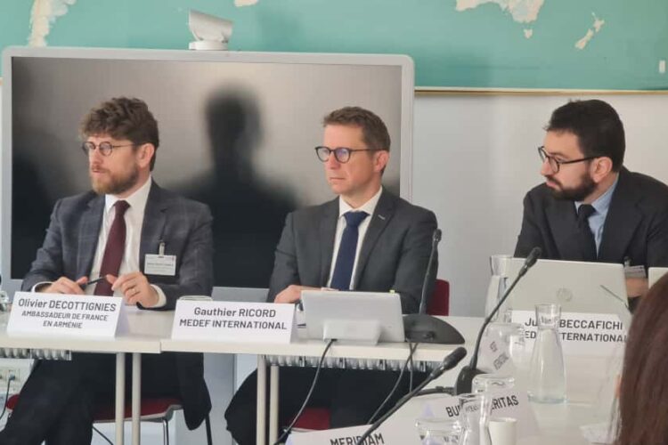 MEDEF International a organisé une réunion d’échanges en préparation de la mission économique en Arménie et en Géorgie prévue le 23 février 2026, en présence de M. Olivier Decottignies, ambassadeur de France en République d’Arménie, et présidée par M. Gauthier Ricord, président du conseil d’entreprises France–Caucase.