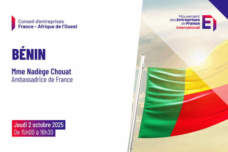Le Conseil d’entreprises France-Afrique de l’Ouest vous invite à prendre part à la réunion autour de Mme Nadège Chouat, ambassadrice de France au Bénin.
