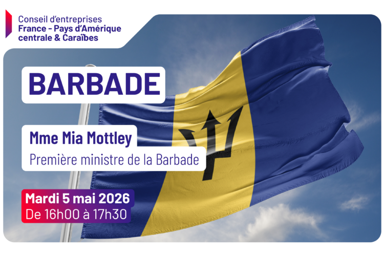 MEDEF International vous invite à une réunion autour de Madame Mia MOTTLEY, Première ministre de la Barbade, le mardi 5 mai 2026, de 16h00 à 17h30, au 20 avenue Rapp, 75007 Paris. Cette réunion sera présidée par M. Jean Lemierre, Président du conseil d’administration de BNP Paribas.