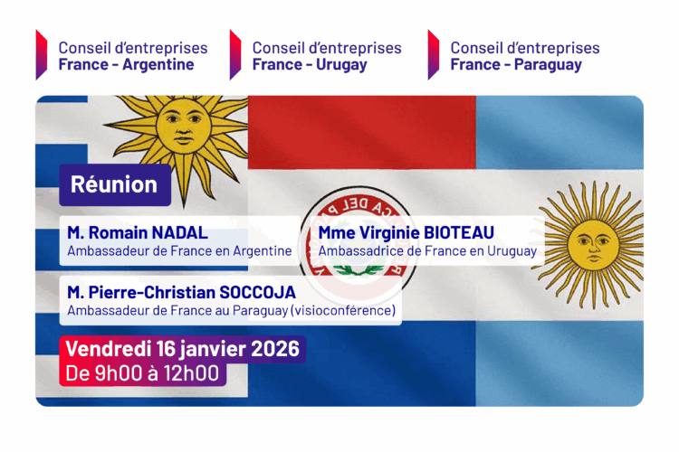 MEDEF International a le plaisir de vous convier, le vendredi 16 janvier 2026, à une matinée dédiée aux opportunités d’affaires dans la région du Cône Sud d’Amérique latine, autour de :