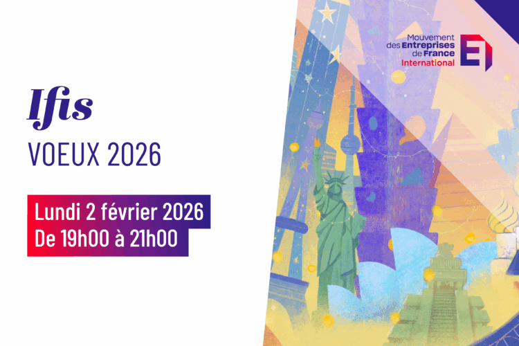 A l’occasion de la nouvelle année, MEDEF International a le plaisir de vous inviter, le lundi 2 février 2026 à partir de 19h00, aux Vœux du pôle Financements internationaux, en présence des entreprises françaises, des institutions publiques de financement (Bpifrance, Direction générale du Trésor) et des bureaux de représentation des banques de développement (Agence française de développement – AFD, Banque mondiale, Banque européenne d’investissement – BEI, etc).